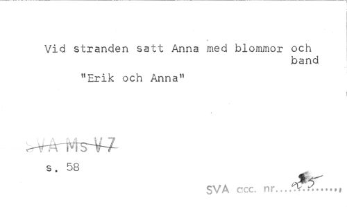 //// Vid stranden satt Anna med blommor och //// band //// "Erik och Anna" //// s. 58 //// SVA ccc. nr. ////