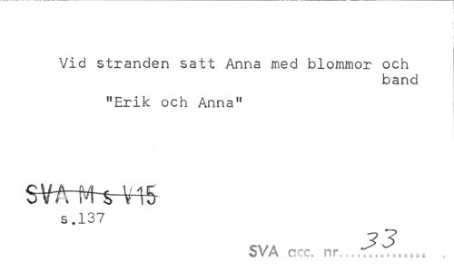 //// Vid stranden satt Anna med blommor och //// band //// "Erik och Anna" //// SWrMVm //// s .137 //// SVA ccc. nr...,^^..., ////