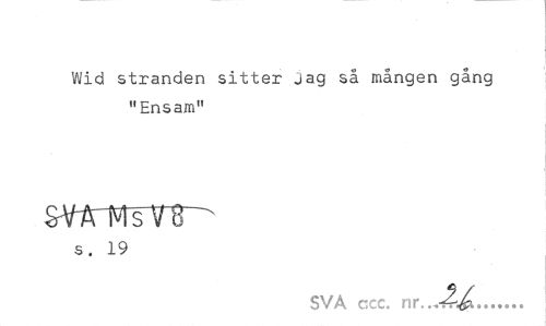 //// Wid stranden sitter Jag så mången gång "Ensam" //// s. 19 //// SVA ccc. nr..„ //// W... ////