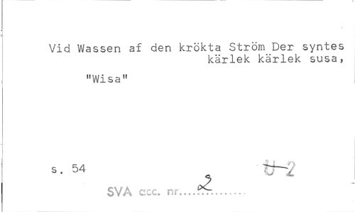 //// Vid Wassen af den krökta Ström Der syntes //// kärlek kärlek susa, //// "Wisa" //// s- 54 « th2 //// j //// SVA ccc. nr— r?r. ////