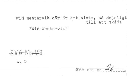 //// Wid Westervik där är ett slott, så dejeligt //// till att skåda //// "Wid Westervik" //// s. 5 //// SVA acc. nr...tC^,... ////