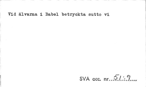 //// Vid älvarna i Babel betryckta sutto vi //// SVA ccc. nr ////