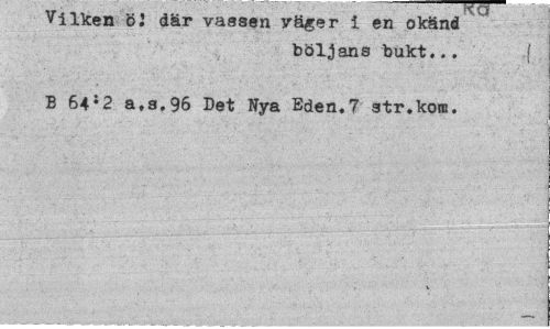 //// Vilken öJ där vassen väger i en okänd //// böljans bukt... ( //// B 64;2 a,s.96 Det Nya Eden.7 str.kom. ////