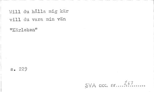 //// Will du hålla mig kär vill du vara min vän //// "Kärleken" s. 229 //// SVA ccc. nr...Åkl... //// - ////