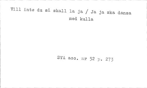 //// Vill inte du så skall la ja / Ja ja ska dansa //// med kulla //// SVA acc. nr 52 p. 273 ////