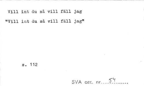 //// Vill int du så vill fäll jag "Vill int du så vill fäll jag" //// s. 112 //// SVA ccc. nr...Ay... ////