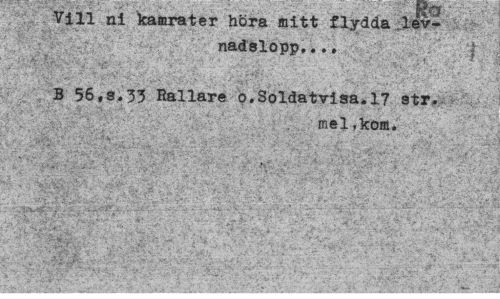 //// Vill ni kamrater hora mitt flydda levnadslopp, ... //// ' "A " ' , ' ... "¦•,*'•' //// B 56,s,33 Rallare o.Soldatvisa.17 str. //// mel,kom. //// .,• • ; - .*• ' Av ; //// * ' -*""" . ' ' v. •'*• ,«-';. '" ... f , _ • / J V- '•"••" ' ' V- '' //// • i ' ' - .. . 1 _ _ -"•. • s _ *1 ' J" • ' . • 4 _ . • //// ,. ^'i&j*' .>',»,¦• i-i • ••¦»'¦- ... ¦• >v • - .- . ¦ ,. • i ^ • v.-*.\< ////