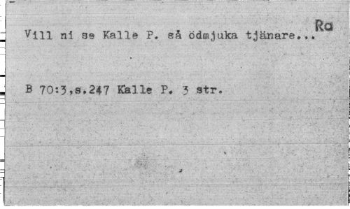 //// Ra //// . Vin ni se Kalle P. så ödmjuka tjänare... B 70:3,8.247 Kalle P. 3 str. //// v /,. //// : J ////