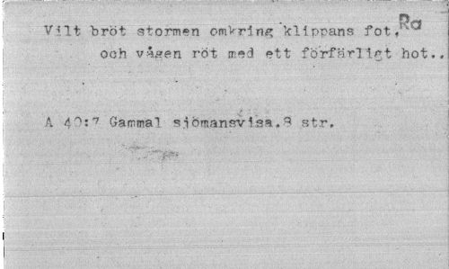 //// Vilt bröt stormen omVrlng kli ppans fot, och vågen röt med ett förf //// Sr I hot, • //// •' ' //// A A 0: v Gammal si Ömansvisa. 8 str. //// • ¦ ¦' ¦;T'" '' '¦-¦>.-'.''¦ ~ y ' . ...:; \ . ////