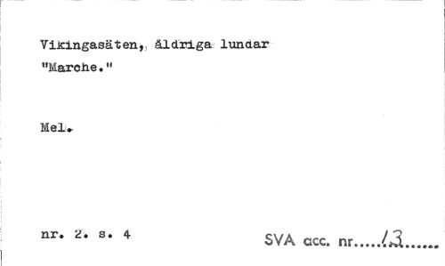 //// Vikingasäten, åldriga lundar "Marciie." //// Mel* //// nr* 2* s* 4 SVA ccc. nr...13... ////