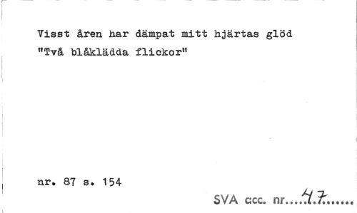 //// Visst åren har dämpat mitt hjärtas glöd "Två blåklädda flickor" //// , nr. 87 s. 154 //// SVA ccc. ... ////