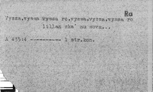 //// Ra //// Yyssa,vysf*a vyssa ro,vy6sa,vyssa>vyssa ro . liljan ska' nu sova... //// A 435-4---— 1 otr.korn. : ////