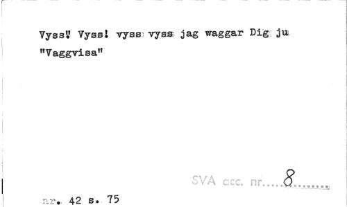 //// Vyss1.' Vyssl vyss vyss jag waggar Dig jtt "Vaggvisa" //// SVA c- nr,...8..,...^ //// nr. 42 s. 75 ////