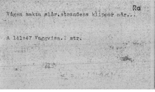 //// - _ ; Ra f| //// Vågen sakta slår,strandens klippor -når.', A 141:4? Vaggvisa.2 str. //// • t vv * * - ' //// :T ; ' • 'v i ¦' " • 1; - • •• . . ////