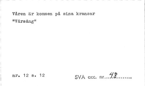 //// Våren är kommen på sina kransar "Vårsång" //// nr. 12 s. 12 SVA ecce nr ...KS... ////