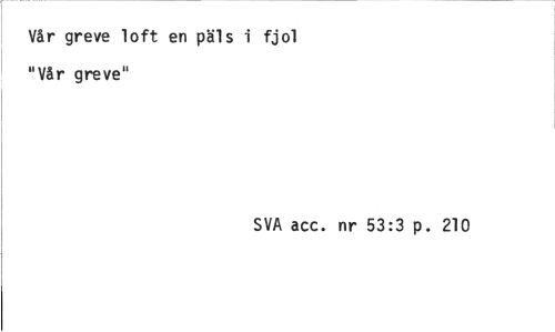 //// Vår greve loft en päls i fjol "Vår greve" //// SVA acc. nr 53:3 p. 210 ////