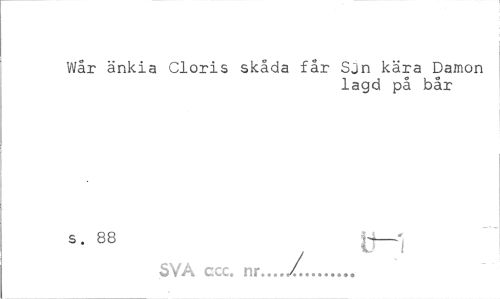 //// Wår änkia Cloris skåda får Sjn kära Damon //// lagd på bår //// s. 88 U— SVÅ ccc. nr.../... ////