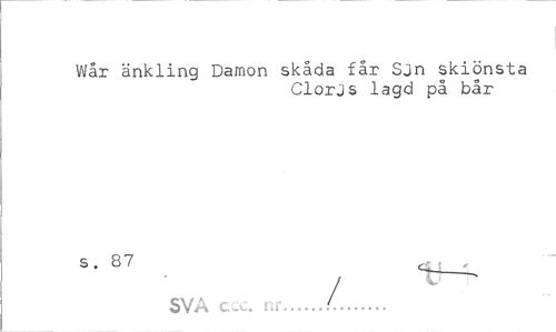 //// Wår änkling Darnon skåda får Sjn skiönsta //// Clorjs lagd på bår //// s. 87 ^ , //// / //// SVA ccc. r,»'.. ' ////