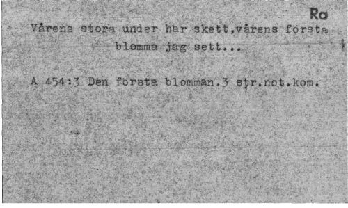 //// Ra //// Vårens stora under bär skett,vårens företa , blomma jag sett... ' ! //// A 454 O Den första blomman.3 sfr.not.kom. //// '-i- ' ;,, //// • y /^'t^ft*; - ' . ' i"'.-1 .. ' % ¦¦¦ ' - 1 ////