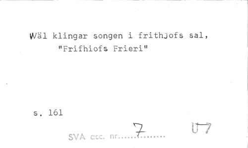 //// Wal klingar songen i frithjofs sal, "Frifhiofs Frieri" //// s. 161 //// 7- ir? //// SVA ccc. nr...T... ////