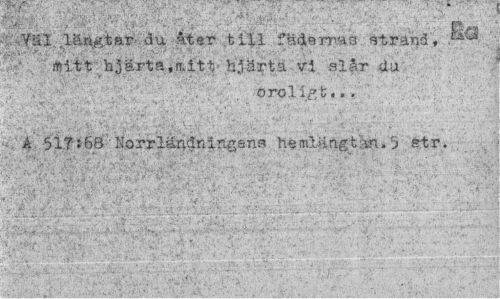//// v^-^Avr^T-/;' r •' //// Y&l längtar-.du ater biU fädsrraa strand, //// mitt .hjärta, mit t- hjärta vi slår du //// , ¦¦ oroligt.. . //// C '¦ V'* % .;. -.'¦'"i-i'- 1 • V' . V '¦ ¦'•.¦/' ! " . v'' ' ¦ ' //// Å 51?i68 Horrländningens hemlängtan »5 str. ////