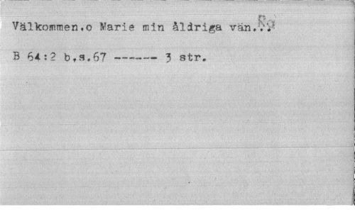 //// r- //// Välkommen,o Warie min åldriga vän. . B 6*:? b.3.67 —---3 str. ////