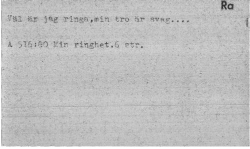 //// RQ //// Väl är jag .ringa,min tro är svag..., j //// A 5l6Véo Kin ringhet.6 str. ////