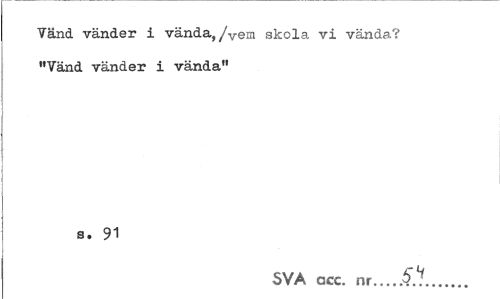 //// Vänd vänder i vända,/vem skola vi vända? "Vänd vänder i vända" //// s. 91 //// SVA ccc. nr. ////