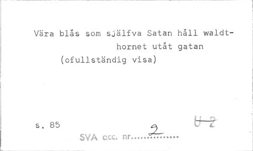 //// Vara blås som själfva Satan håll waldt- //// hornet utåt gatan (ofullständig visa) //// s. 85 ^ T //// SVA ccc. nr... ////