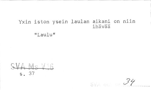//// Yxiri iston ysein laulan aikani on niin //// ihävää //// "Laulu" //// SMs //// S. 37 ////