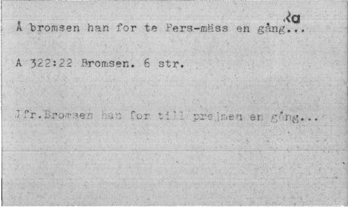 //// to //// a bromsen han for te Pers-mäss en gång... A 322:22 Bromsen. 6 str. //// T fr. Broder; Tor t i" 1 pre- er r/ng... //// ¦'¦¦'. -i . • • .-.v. i. ¦ ¦:¦- .¦.' . ' ' ... .;- .'" , ////