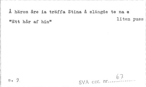 //// 1 härom åre ia träffa Stina å slängde te na e "Ett hår af hin« liten pUSS //// s* y svA ccc. nr... • ////