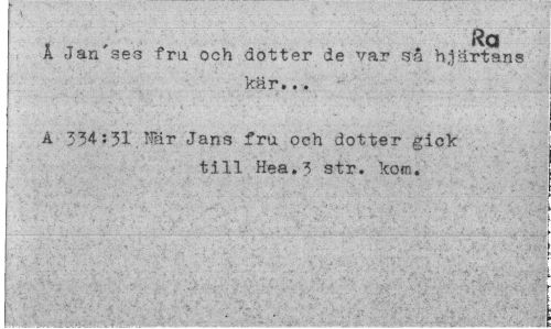 //// Å Jan'ses fru och dotter de var så hjärtans //// kär... //// A 334 :31. Far Jans fru och dotter gick till Hea.3 str. kom. ////