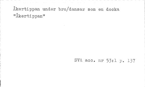 //// Åkertippan under bro/dansar som en docka "Åkertippan" //// SVå acc. nr 53:1 p. 137 ////
