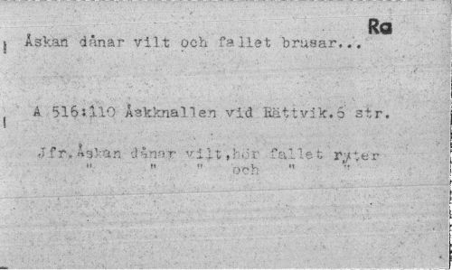 //// Ra //// j Askan danar vilt och fallet brusar... //// ' A 516:110 Åskkna1len vid Hattvik.5 str. Jfr. Åskan danar vl£t ,hor fallet //// w (. <» (YnVi " ////