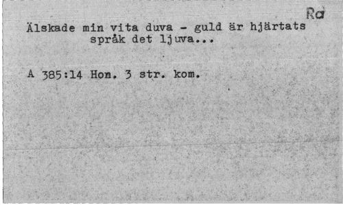 //// Ra //// Älskade min vita duva - guld är hjärtats språk det ljuva... //// A 385:14 Hon. 3 str. kom. ////
