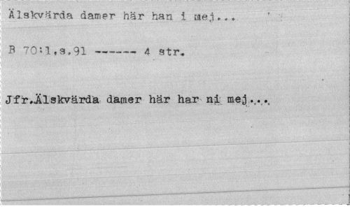 //// Älskvärda damei" här han i »ej... B 70*1,3.91---— 4 str» //// Jfr.Älskvärda damer här har ni mej... r ////