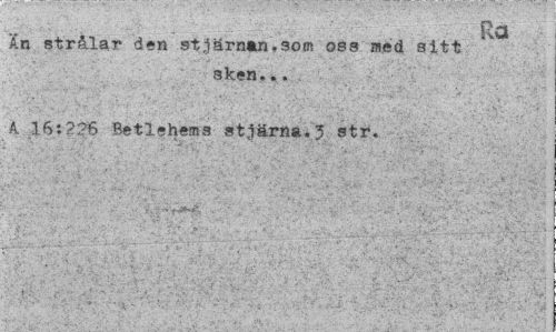 //// - Ra //// Än strålar den stjärnan.som oss raed sitt //// sken... //// A. 16:??6 Betlehems stjärna.? str. //// "" -vV-"-i - 'vv:' ////