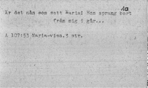 //// Är det nån som sett %ria! Hon sprang bort //// från mig i går,., //// A 107:53 Maria-visa.3 str. , ////
