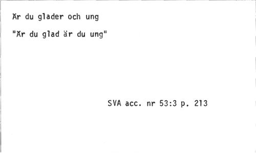 //// Är du gläder och ung "Är du glad är du ung" //// SVA acc. nr 53:3 p. 213 ////
