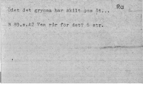 //// Ra //// Odet det grymnia har skilt pss åt... //// I //// B 39,s.42 ?em rår för det? 6 str. //// 1 ////
