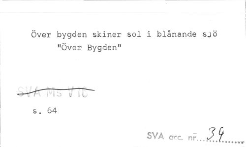 //// Över bygden skiner sol i blånande sjö "Över Bygden" //// ¦^fFN" IT u //// s. 64 //// SVA are. nr... J 7 ////
