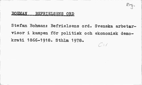 //// msmä-befrielsens ord //// Stefan Bohman: Befrielsens ord. Svenska arbetar-visor i kampen för politisk och ekonomisk demokrati 1866-1918. Sthlm 1978. //// C- / ////