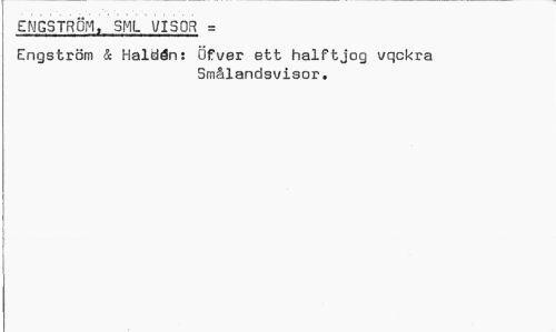 //// ENGSTRÖM, SML VISOR = //// Engström & Haldön: Öfver ett halftjog vqckra //// Smålandsvisor. ////