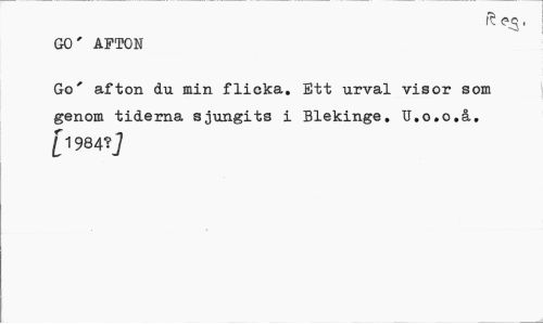 //// GO' AFTON //// Go' afton du min flicka. Ett urval visor som genom tiderna sjungits i Blekinge. U.o.o.å, //// [1984?J ////