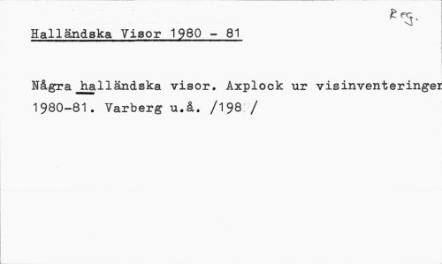 //// Halländska Visor 1980 - 81 //// Några halländska visor. Axplock ur visinventeringe: 1980-81 . Yarberg u.å. /198 / ////