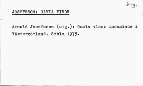 //// JOSEFSSON: GAMLA VISOR //// Arnold Josefsson (utg.): Gamla visor insamlade i Västergötland. Sthim 1975. ////
