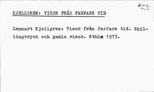 //// K JBLLG-RM: VISOR FRÅI1 PARFARS TID //// Lennart Kjellgrens Visor från farfars tid. Skil-lingtryck och gamla visor. Sthla 1973. ////