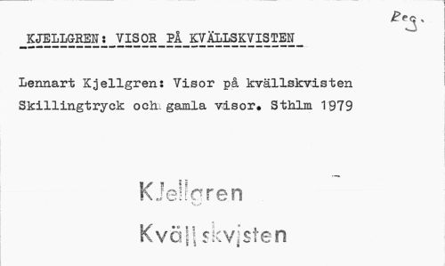 //// JPeq % //// K^LLGMN£_VISOR_PÅ_KVÄLSKVISTM_ //// Lennart Kjellgren: Visor på kvällskvisten Skillingtryck ock: gamla visor. Sthlm 1979 //// KJe!!gren Kvö|| skvjsteri ////