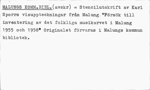 //// MALUNGS KOMM.BIBL.(avskr) = Stencilutskrift av Karl Sporrs visuppteckningar från Malung "Försök till inventering av det folkliga musikarvet i Malung 1955 och 1958" Originalet förvaras i Malungs kommun bibliotek. ////